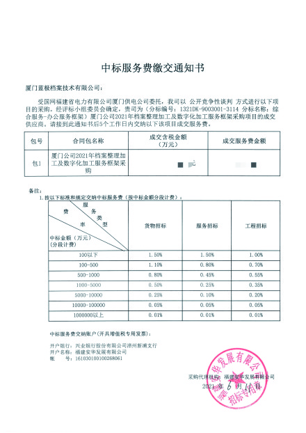 由福建安華發(fā)展有限公司組織的國網(wǎng)福建省電力有限公司廈門供電公司2021年檔案整理加工及數(shù)字化加工服務框架采購項目正式發(fā)出公告,廈門藍極檔案技術有限公司參加該項目投標活動,并成功中標。